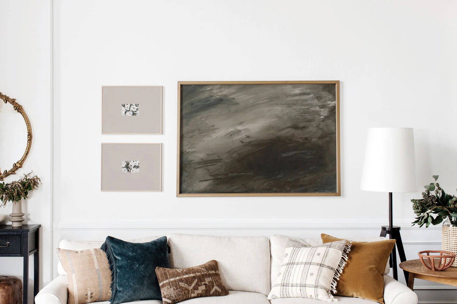 Adding a floral duo from Kristine Brookshire to the shop! She says, "This floral pairing is like a cozy sweater for your walls. The warm tones of the natural linen, the softness of the delicate charcoal, the thick texture in the brushstrokes of paint, bring more earthiness the painting than traditional floral images."